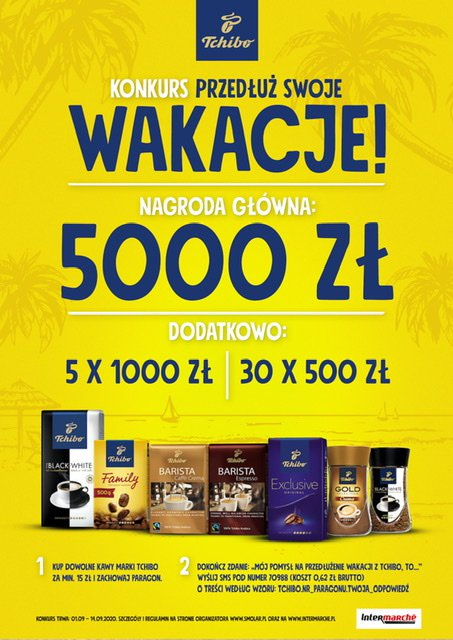 - Kup dowolne kawy marki Tchibo za minimum 15 zł i zachowaj paragon.