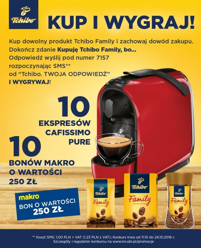 Kup Tchibo Family w Makro i dokończ zdanie: "Kupuje Tchibo Family bo...", wyslij sms o treści : TCHIBO.odp na 7157