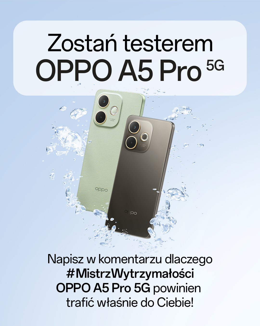 • Napisz komentarz pod wskazanym postem, aby mieć szansę wygrać smartfon OPPO A5 Pro 5G