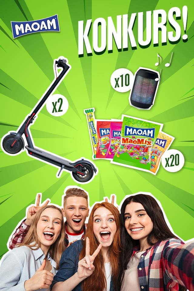 • 2 nagrody główne – elektryczne hulajnogi i zestaw słodyczy MAOAM!