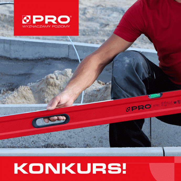 Marka PRO produkuje profesjonalne i precyzyjne narzędzia do prac budowlanych, wykończeniowych, remontowych, naprawczych. W swoim najnowszym konkursie zachęca tych, którzy na co dzień pracują na budowie czy w wykończeniówce, by przejrzeli swój zestaw sprawdzonych narzędzi i sprawdzili, czy jest wśród nich narzędzie marki PRO (np. kultowa czerwona poziomnica?) Zadanie jest proste - wystarczy napisać w komentarzu, które narzędzie PRO jest Waszym ulubionym i dlaczego Najlepsze odpowiedzi nagrodzone zostaną czarnymi poziomnicami PRO 800!