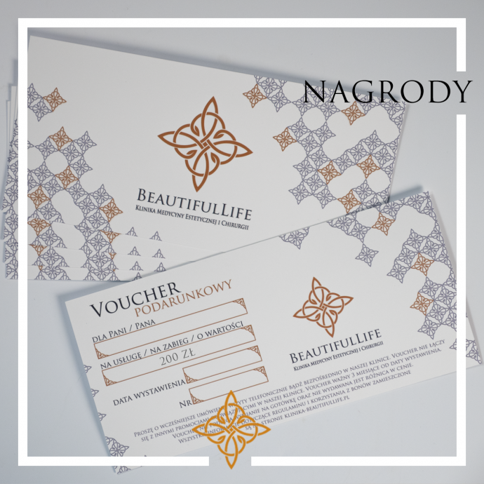 - 1 miejsce - voucher o wartości 200 zł do wykorzystania w Klinice Organizatora