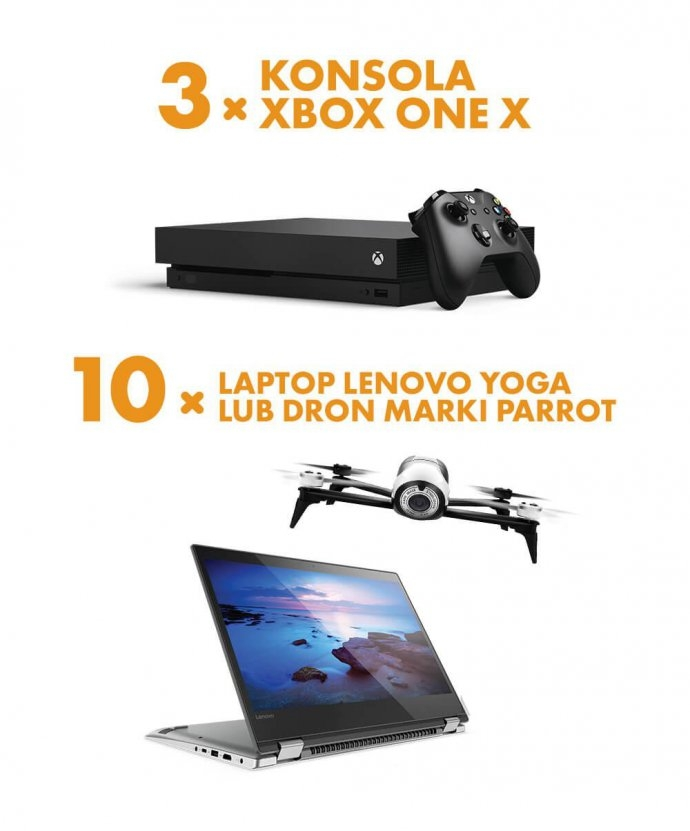 - 10x Laptop Lenovo Yoga o wartości 3000 zł brutto lub Dron Marki Parrot o wartości 3000 zł brutto