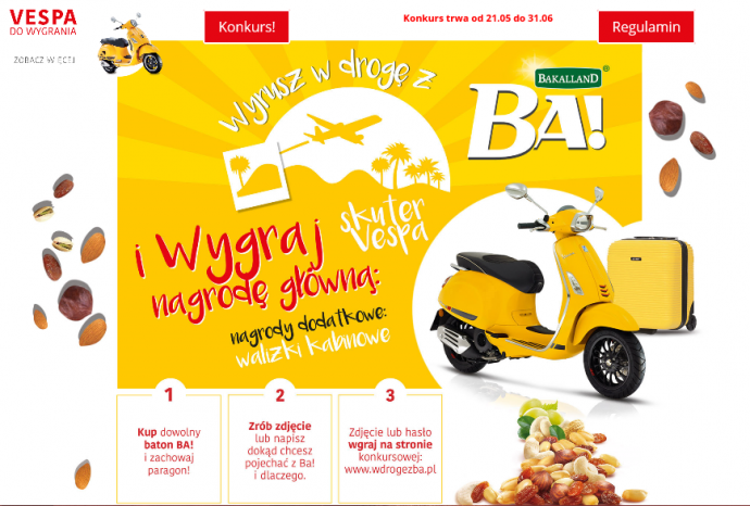 - kreatywnego opisu (hasła) w języku polskim o długości maksymalnie 1000 znaków (w tym spacji) dotyczącego batonu „BA!” w kontekście planów podróżniczych Uczestnika.