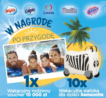 "10 nagród II stopnia, każda w postaci wakacyjnej walizki dla dzieci Samsonite, o