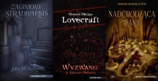 pakiet trzech książek "Dziewiątki": "Zaginiony Stradivarius" Johna M. Faulknera, "Wyzwanie z innego świata" H.P. Lovecrafta oraz "Nadchodząca rasa" E. Bulwer-Lyttona