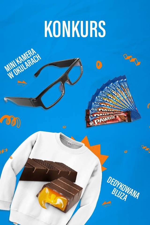15x Nagroda I Stopnia, która składa się z minikamery z rejestratorem w okularach OTP-GL300C o wartości 650 zł oraz zestawu batoników Pawełek o wartości 42,96