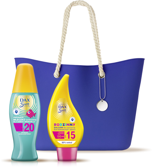 1 miejsce: torba typu jelly bag, ręcznik Dax Sun, zestaw 5 kosmetyków do opalania Dax Sun