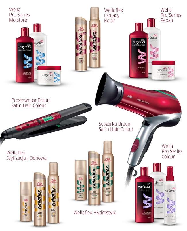 - zestaw kosmetyków do pielęgnacji włosów Wella Pro Series Moisture oraz zestaw do stylizacji Wellaflex Stylizacja i Odnowa.