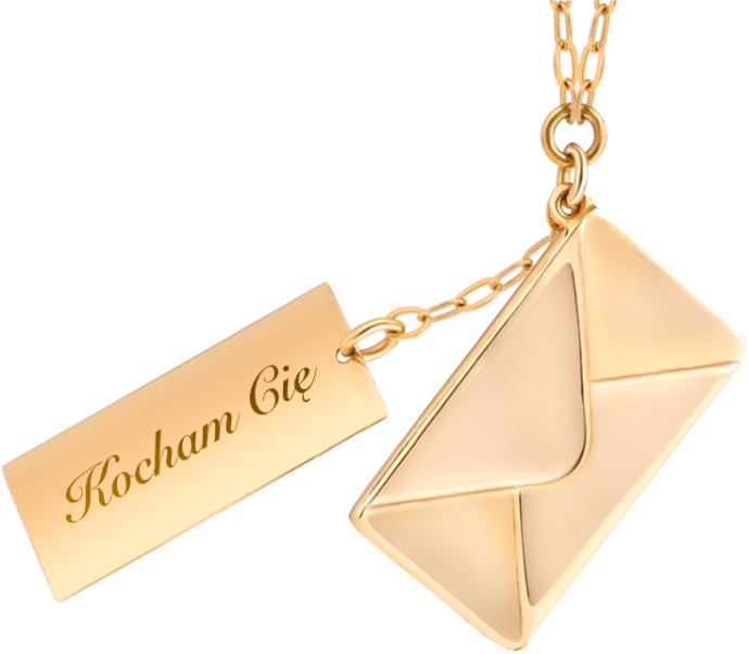 5 złotych naszyjników marki W.KRUK z kolekcji walentynkowej, o numerze katalogowym ZNI/NZ51, o wartości 789.00 zł każdy.