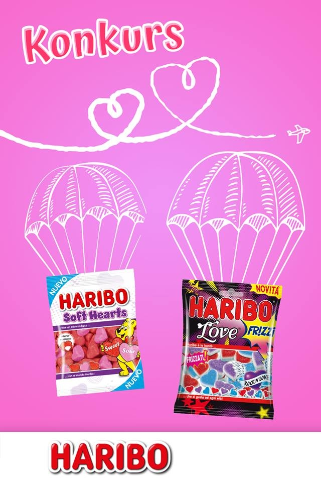 5 słodkich zestawów (6 paczek HARIBO Soft Hearts oraz 6 paczek HARIBO Love Frizzi)