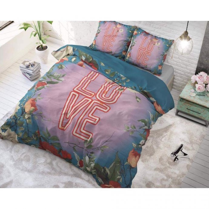 Komplet pościel holenderskiej marki DreamHouse - LED LOVE TURQUOISE 200 x 220 + 2 poszewki 60 x 70, ze 100%, wysokiej jakości bawełny.