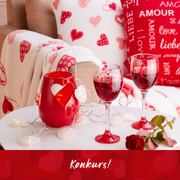 Walentynkowa poduszka, koc, lampion oraz 2 kieliszki ze zdjęcia mogą trafić do Ciebie!