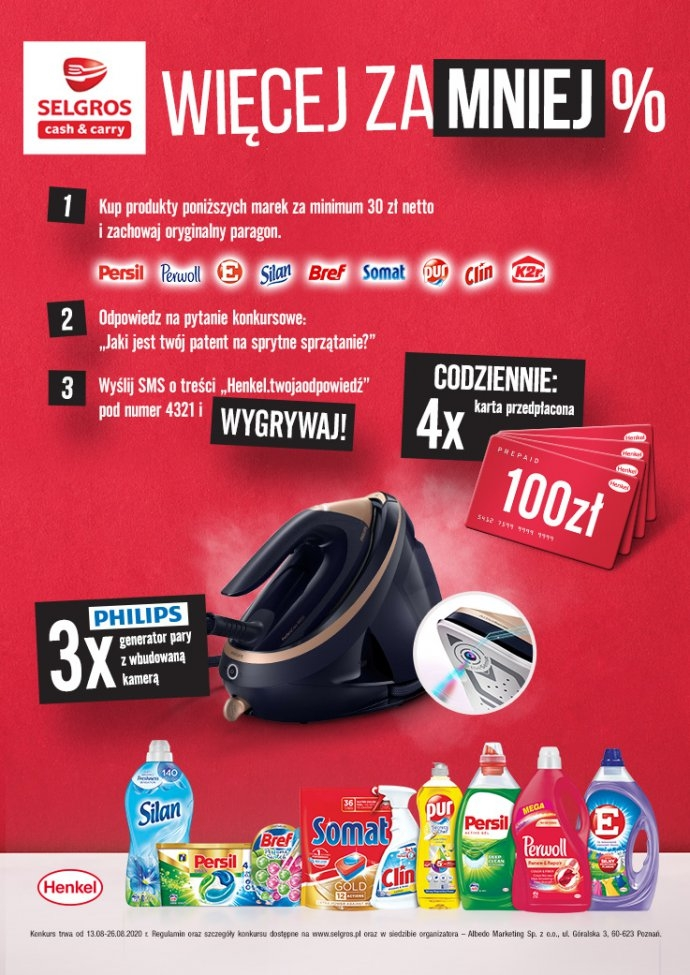 - Kup w Selgros dowolne produkty marek:Persil, E, Perwoll,K2R,Data,Silan,Pur, Somat, Bref, Clin za minimum 30zł, zachowaj paragon.