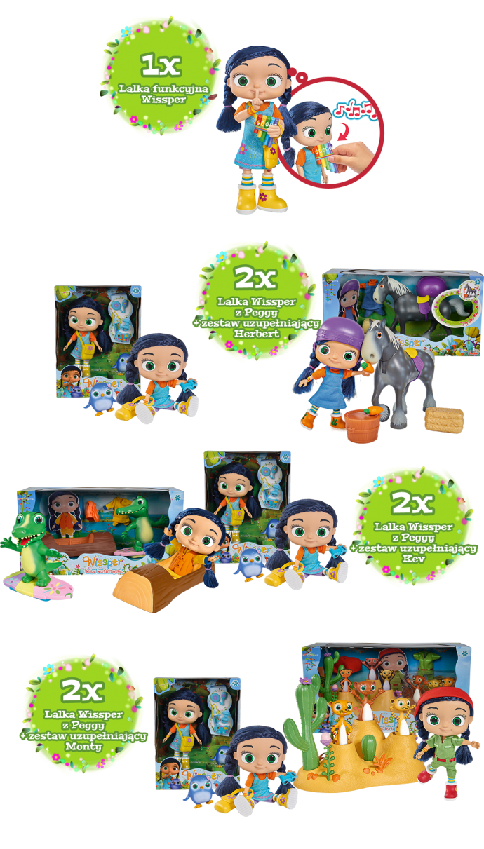 Laureaci miejsc 4-5 Konkursu jako Nagrodę otrzymują: Wissper Lalka z Peggy + zestaw uzupełniający Herbert