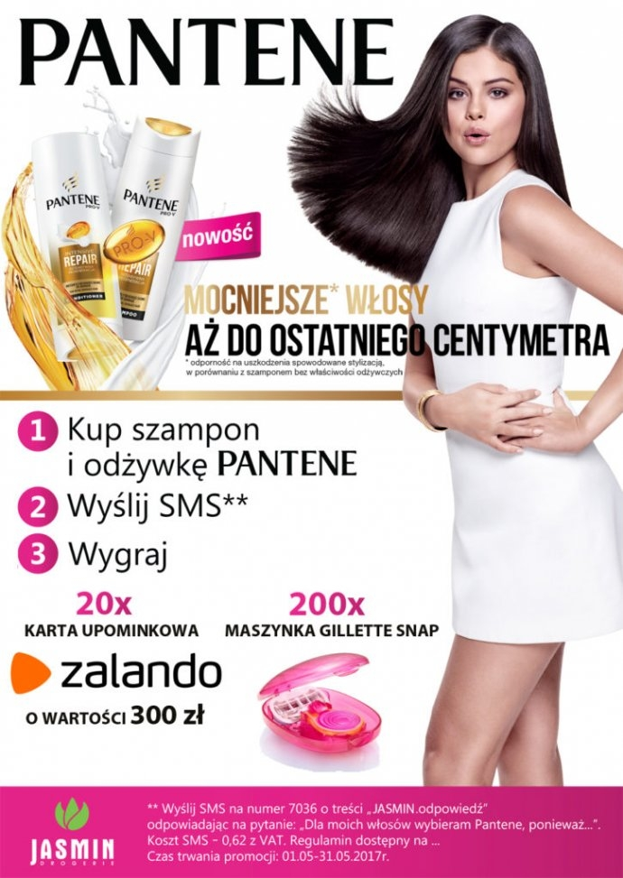 Wysłać sms na numer 7036 o treści JASMIN.ODPOWIEDŹ, gdzie w miejsce "ODPOWIEDŹ" należy wpisać swoją autorską propozycje dokończenia zdania "Dla moich włosów wybieram Pantene, ponieważ..."