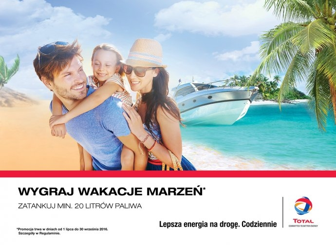 Akcja „Wybierz stacje na wakacje!” rozpoczyna się 1 lipca i potrwa do 30 września 2016. Aby wziąć w niej udział należy zatankować minimum 20 litrów dowolnego paliwa na stacji Total, a następnie zarejestrować kod konkursowy otrzymany w miejscu zakupu. Kod trzeba aktywować na stronie wakacjeztotal.pl, wypełnić wymagane pola formularza rejestracyjnego oraz odpowiedzieć na pytanie konkursowe „Gdzie pojedziesz na wycieczkę marzeń i dlaczego?”.