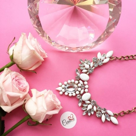Biała kolia od Coralove na złotym łańcuszku