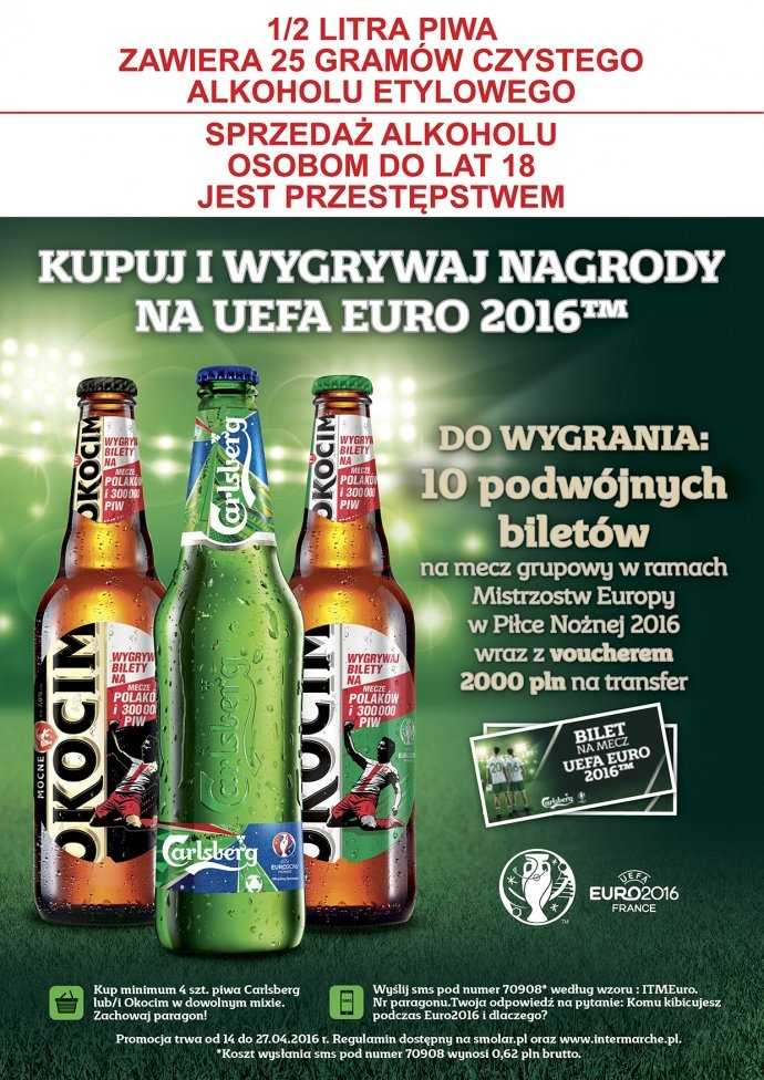 a) Dokonać zakupu promocyjnego (– jednorazowy zakup minimum czterech dowolnych sztuk piwa marki Carlsberg i/lub Okocim (w konkursie biorą udział: puszki, butelki i czteropaki zawierające cztery sztuki produktu – według dowolnego wyboru uczestnika)) i zachować oryginał dowód zakupu.