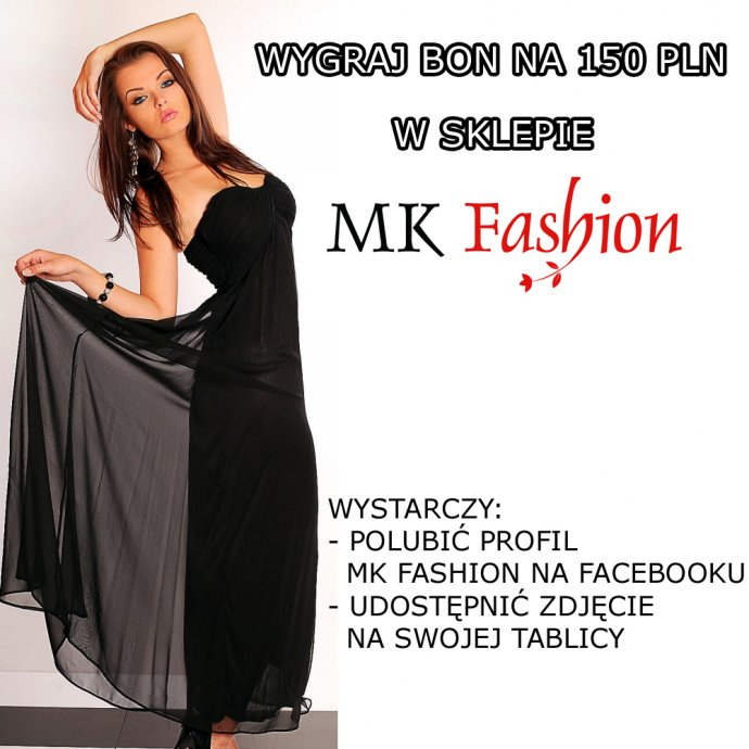 Wygraj bon o wartości 150 zł na zakupy w sklepie MK Fashion. Wystarczy polubić profil MK Fashion na Facebooku i udostępnić zdjęcie konkursowe na swojej tablicy.