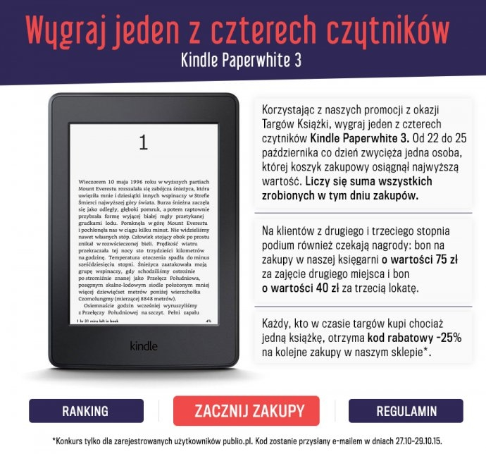 I - czytnik Kindle Paperwhite 3 o wartości 537 zł