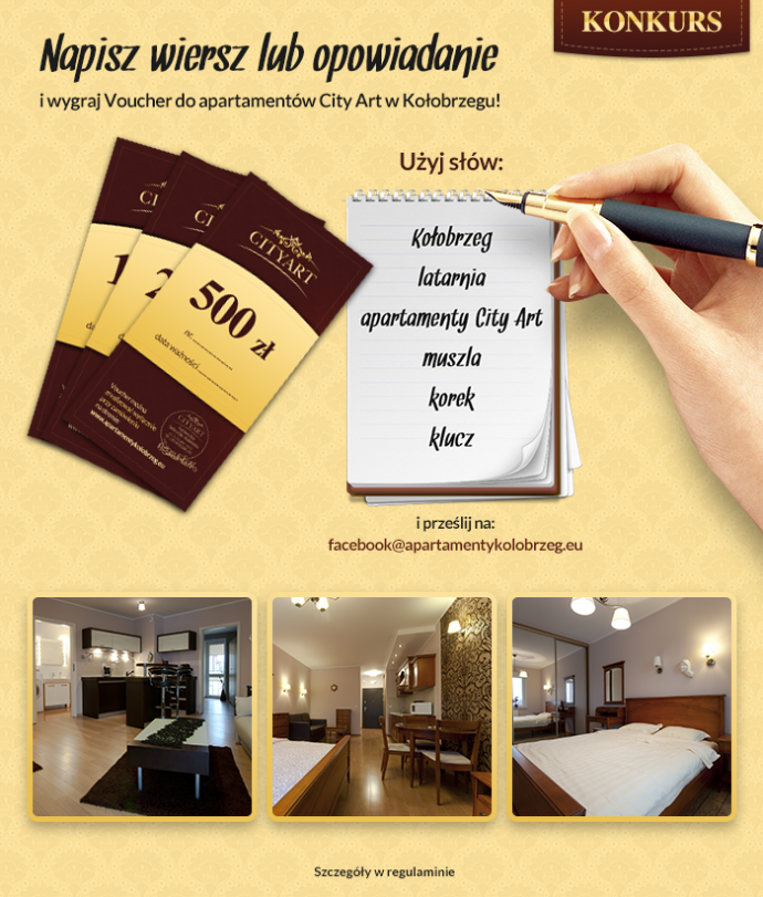 c) Gotowe teksty należy przesłać e-mailem na adres facebook@apartamentykolobrzeg.pl