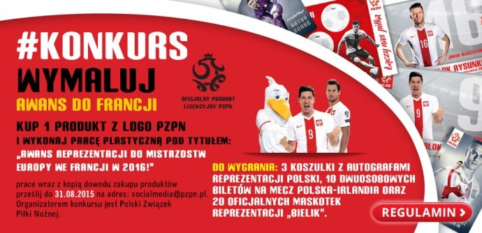 Kup 1 produkt z Logo PZPN i wykonaj pracę plastyczną pod tytułem "Awans Reprezentacji do Mistrzostw Europy we Francji w 2016!"