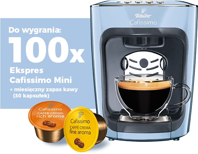 100 x ekspresów plus do każdego ekspresu miesięczny zapas kawy Cafissimo (30 kapsułek)
