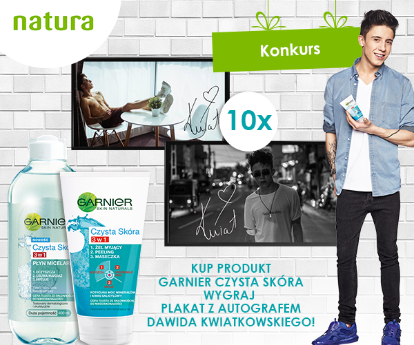Kup produkt Garnier Czysta Skóra, zaloguj się na profil Drogerii Natura na fb i odpowiedz na pytanie: „Dlaczego to właśnie do Ciebie powinien trafić plakat z autografem Dawida?”.