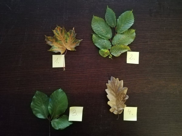 - Zadanie 2. Na zdjęciu są liście drzew. Proszę rozpoznać gatunki. Liczy się kolejność odpowiedzi.