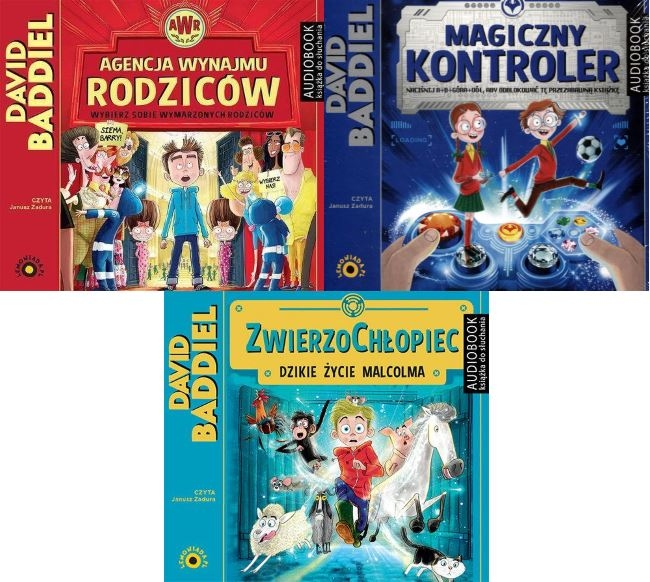 2 zestawy po 3 audiobooki: "Agencja wynajmu rodziców", "Magiczny kontroler", "Zwierzochłopiec"