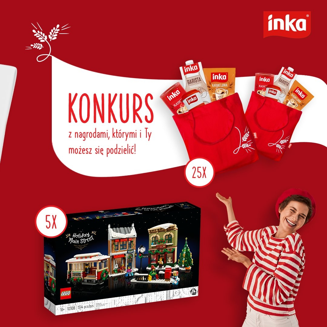- 5 nagród głównych w postaci zestawów klocków LEGO z edycji świątecznej oraz podwójnych toreb z inkowymi produktami