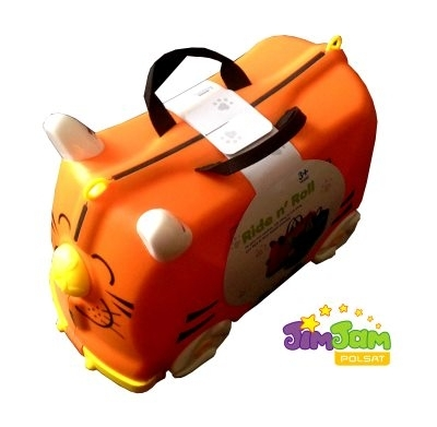 walizka-jeździk w kształcie tygryska. Można do niej spakować ubrania i zabawki na wyjazd oraz usiąść na niej w chwili zmęczenia w czasie podróży!