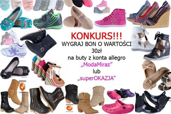 BON o wartości 30 zł na wybrane buty z konta allegro "ModaMiraz" lub "superOKAZJA"