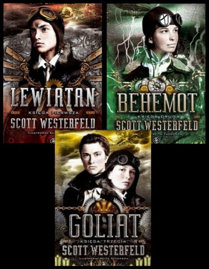Trzy zestawy składające się z książek „Lewiatan”, „Behemot” i „Goliat” autorstwa Scotta Westerfelda, które zostały wydane nakładem wydawnictwa REBIS.