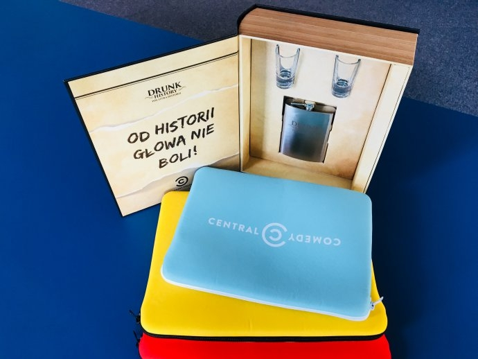 5 x księga "Drunk History" (czyli piersiówka i kieliszki) plus pokrowiec na laptopa (jeden z trzech kolorów do wyboru).
