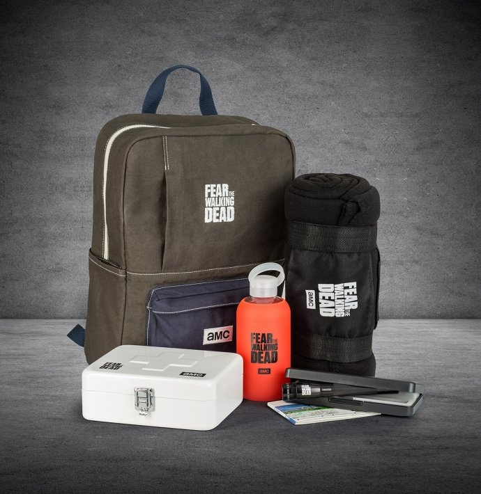 3x zestaw przetrwania z oryginalnymi gadżetami "Fear the Walking Dead" (plecak, bidon, koc i apteczka)