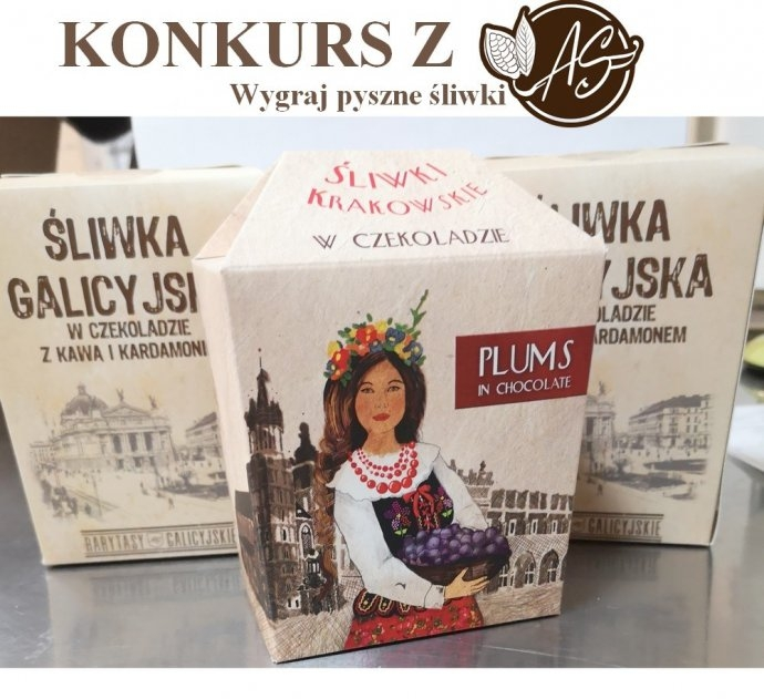 Zestaw śliwek od Alta Saska: Śliwka Lwowska z kawą i kardamonem, Śliwki Krakowskie w czekoladzie i Śliwka Drohobycka z cynamonem.