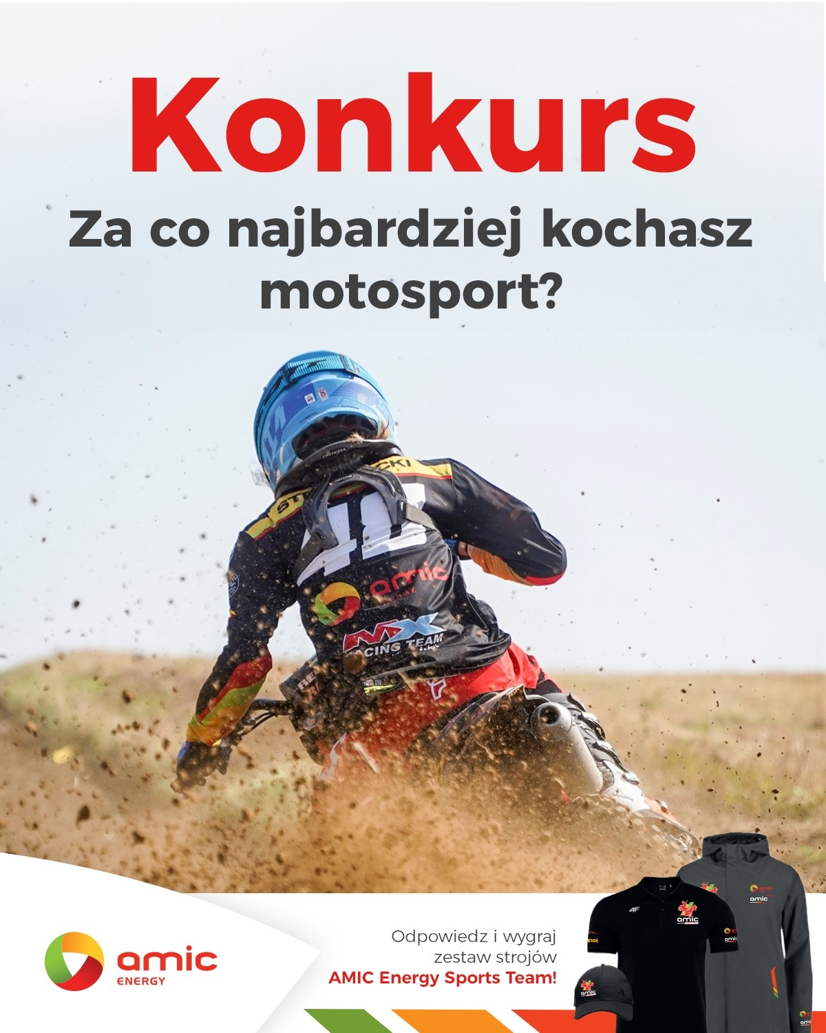 autorzy 5 najciekawszych odpowiedzi otrzymają od nas zestawy ubrań z unikalnej kolekcji AMIC Energy Sports Team