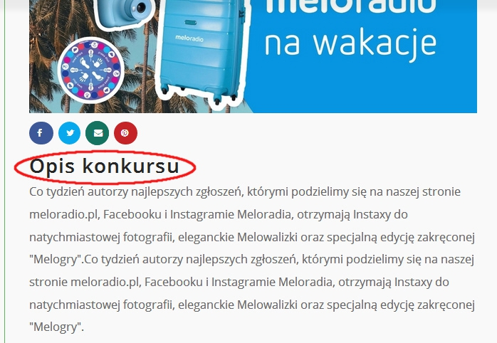 Co tydzień autorzy najlepszych zgłoszeń, którymi podzielimy się na naszej stronie meloradio.pl, Facebooku i Instagramie Meloradia, otrzymają Instaxy do natychmiastowej fotografii, eleganckie Melowalizki oraz specjalną edycję zakręconej "Melogry".