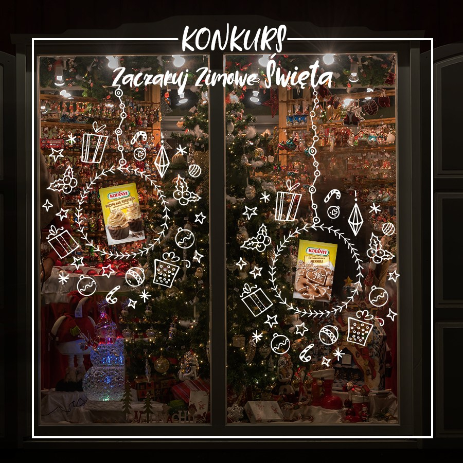 Narysuj mazakiem kredowym na szybie swoją zimową inspirację! Może to być na przykład wymarzone miasteczko piernikowe czy historyjka świąteczna, ale koniecznie wkomponuj w rysunek (naklej na szybę) dowolną przyprawę Kotányi.