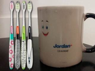 W skład zestawu wchodzi kubek (zmieniający kolor pod wpływem gorącej wody) i 4 szczoteczki z nowej kolekcji Jordan Individual.