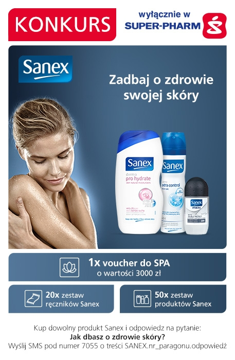 Kup w drogerii Super-Pharm dowolny żel pod prysznic lub dezodorant marki SANEX. Pamiętaj by zachować paragon.