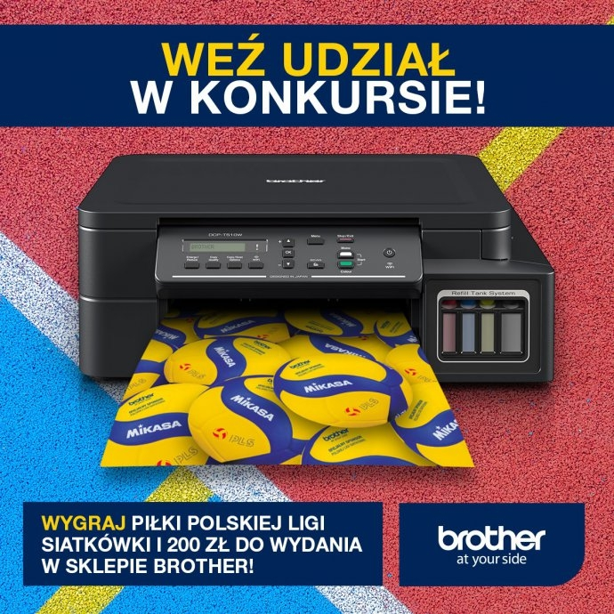 - Nagroda główna: 1 piłka do siatkówki z logo Polskiej Ligi Siatkówki i logo Brotheroraz voucher na 200 zł na materiały eksploatacyjne do wykorzystania w sklepie Brother Polska