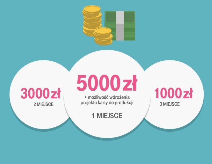 1 miejsce: nagroda pieniężna o wartości 5000 złotych brutto oraz możliwość wdrożenia projektu karty do produkcji.