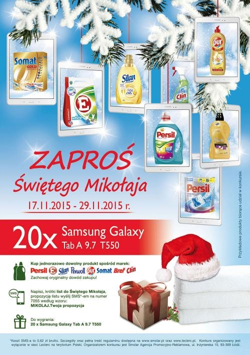 Warunkiem wzięcia udziału w konkursie jest dokonanie zakupu dowolnego produktu spośród marek: Persil, E, Silan, Perwoll, Pur, Somat, Bref, Clin, a następnie wysłanie pod numer 7055 SMS-a z krótkim listem do Świętego Mikołaja. Treść SMS-a powinna mieć następujący schemat: MIKOLAJ.Twój list do Świętego Mikołaja.