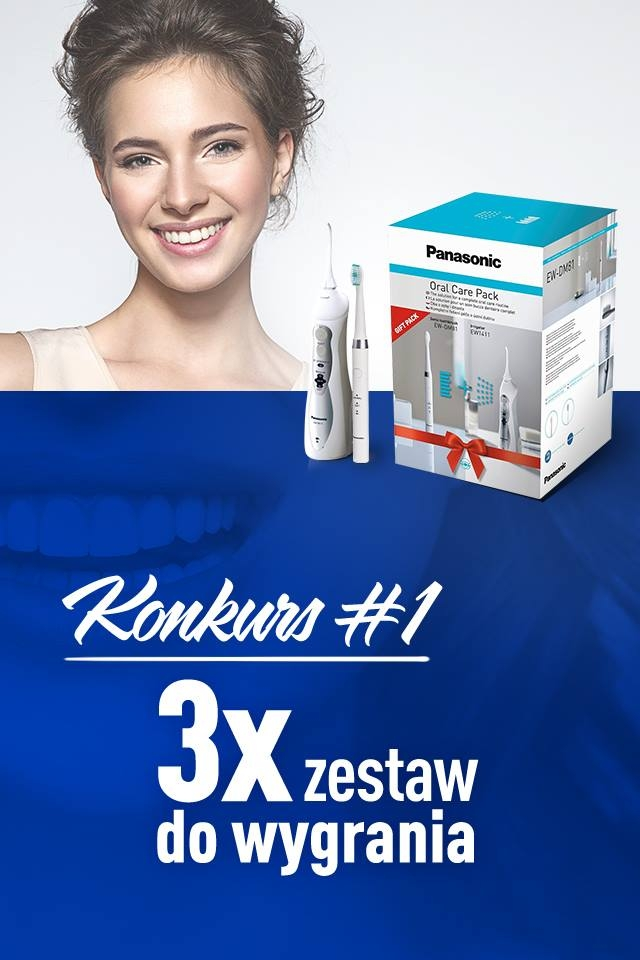 Nagrodą jest zestaw do higieny jamy ustnej składający się ze szczoteczki sonicznej Panasonic DM81 i irygatora Panasonic EW1411
