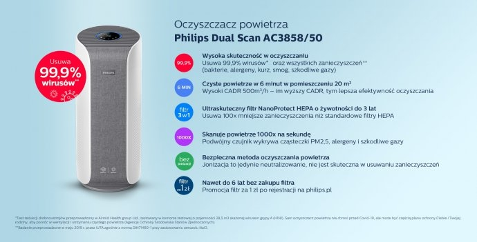 oczyszczacz powietrza Philips Dual Scan AC3858/50, który zadba o Twoje dobre samopoczucie w domu i pozwoli swobodnie odetchnąć.