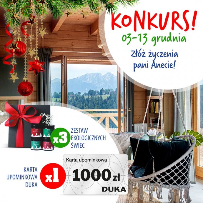 karta zakupowa DUKA o wartości 1000 zł oraz 3 cudowne zestawy ekologicznych świec zapachowych Yush