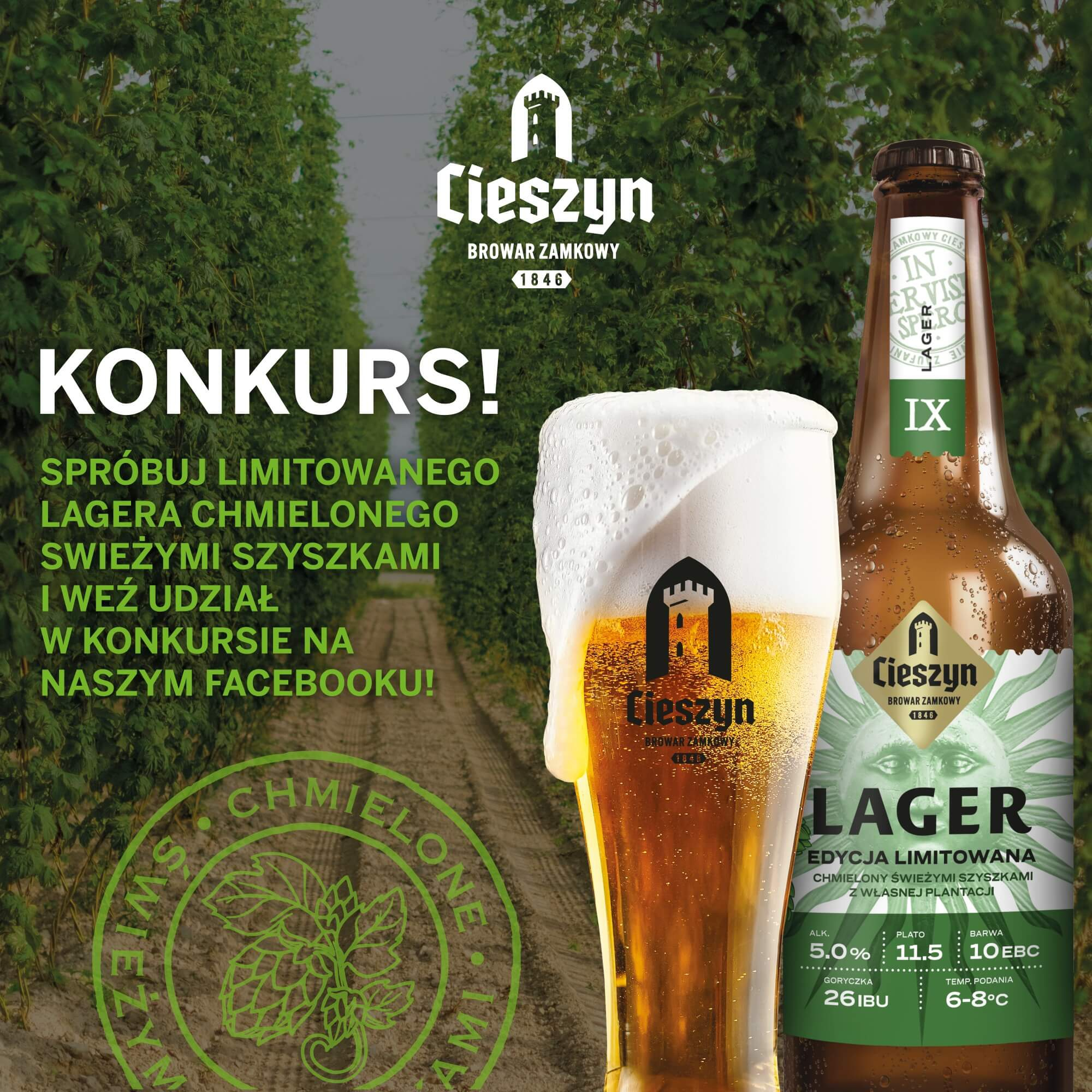 - Znajdź limitowaną edycję cieszyńskiego Lagera chmielonego świeżą szyszką, w sklepach i lokalach partnerskich Browaru Zamkowego Cieszyn,